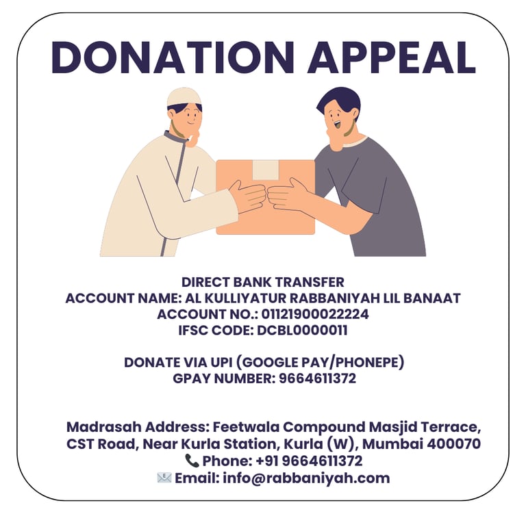 Your contributions directly impact the lives of students and the sustainability of this madrasah. By donating, you help us ↓